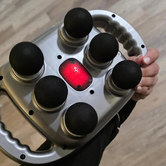 It’s a full-powered, deep-tissue massage device with 6 dynamic kneading heads that simulate real human hands — working into tight muscles, knots, and trigger points.